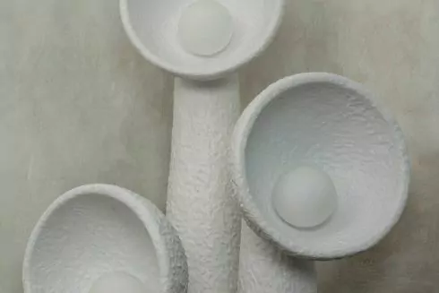 Все предметы созданы по технологии, напоминающей «валькування» - обмазку стен дома-мазанки. Они изготовлены из авторского материала Ztista, который состоит из: глины, бумаги, соломы и дерева.