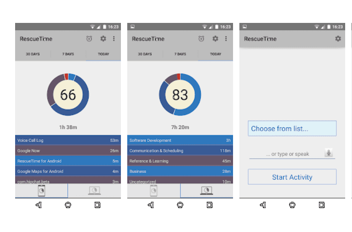 Один из лучших таймтрекеров. Анализирует поведение онлайн: потраченное время, какие сайты посещались. Информацию вы получаете в форме отчетов и диаграмм. RescueTime устанавливается на всех устройствах и позволяет отследить, сколько времени вы тратите на работу, обучение, общение, шопинг, или новости. Всем категориям присваивается степень продуктивности.
