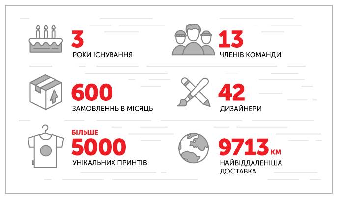 “На тот момент люди хотели сравнивать себя с историческими персоналиями. Поэтому мы перенесли образы известных украинцев в современность. Шевченко у нас был молодой и в косухе, а Бандера с татуировками. Мы хотели, чтобы люди отнеслись к этому не как к шароварщине, а увидели в этом современный принт с национальной идеей. 18 августа мы запустили коллекцию и до 31 декабря продали 1000 футболок” – рассказывает Антон.