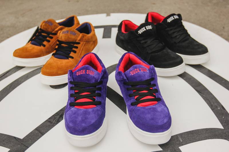 Duck Side – это марка одежды, обуви и снаряжения для представителей скейтерской культуры. Автор бренда Антон Долинский выпускает футболки, сноубордические куртки и брюки, а также лонгборды и скимборды. А этим летом состоялся релиз первых скейтерских кроссовок Duck Side, сделанных в Украине.