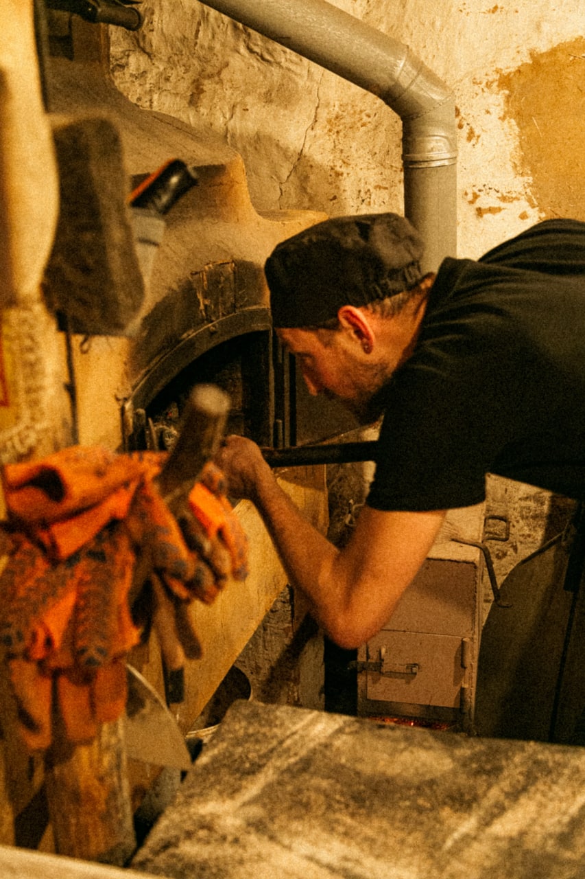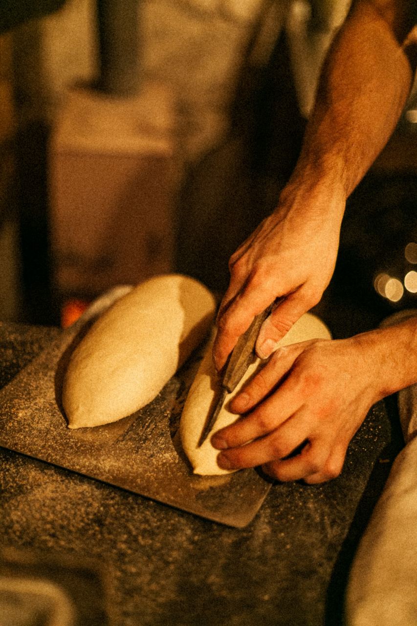 Один из пекарей – Юрий, бывший айтишник. В канун 2022 года он уволился и начал искать себя. Когда началась полномасштабная война, стал печь хлеб для соседей, но ему нужно было больше ресурсов и знаний. Тогда он вспомнил о контакте Ярослава: уже через день они вместе пекли хлеб для добровольческого батальона, а в апреле приехали в «Хатинку Пекаря» в освобожденной Буче и приступили к работе.
