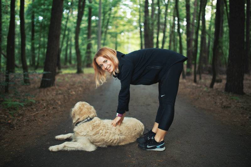 Потом у нас было интервью с журналистом, автором блога Spoon! и консультантом по питанию Анастасией Голобородько. Мы встали рано утром и побегали с ней и ее псом Кокосом в Никольском лесу. Оказалось, Настя привыкла вставать еще раньше и к 7 утра уже заканчивать пробежку.