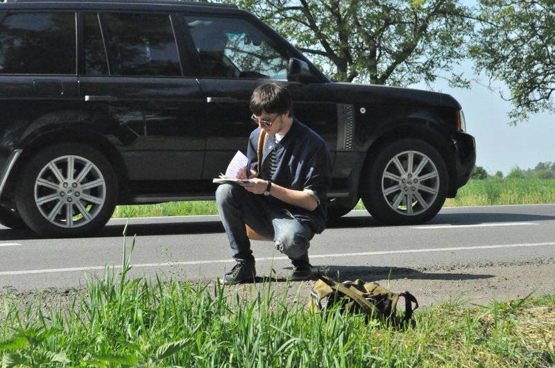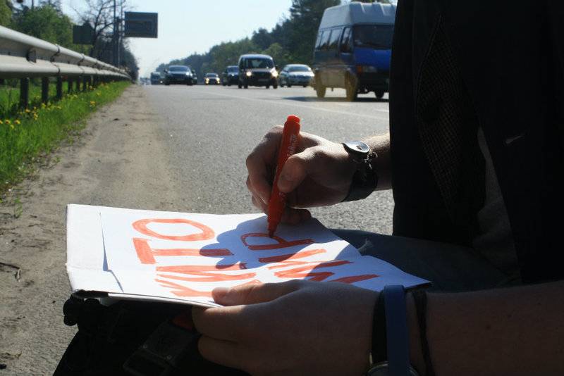 Друг мало что объяснял, просто рассказал, что надо выйти на трассу и голосовать. Мы выехали на Черниговскую трассу, и оказалось, что ловить машину надо именно мне. Это и был переломный момент, когда вроде все понятно, но нужно как-то заставить себя поднять палец вверх и улыбаться. Я простоял минут 20 даже без поднятой руки, потом все же поднял ее и через время остановил машину.