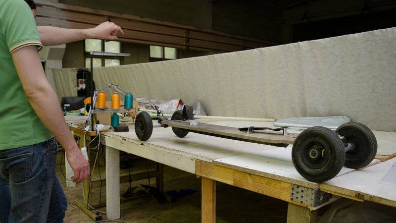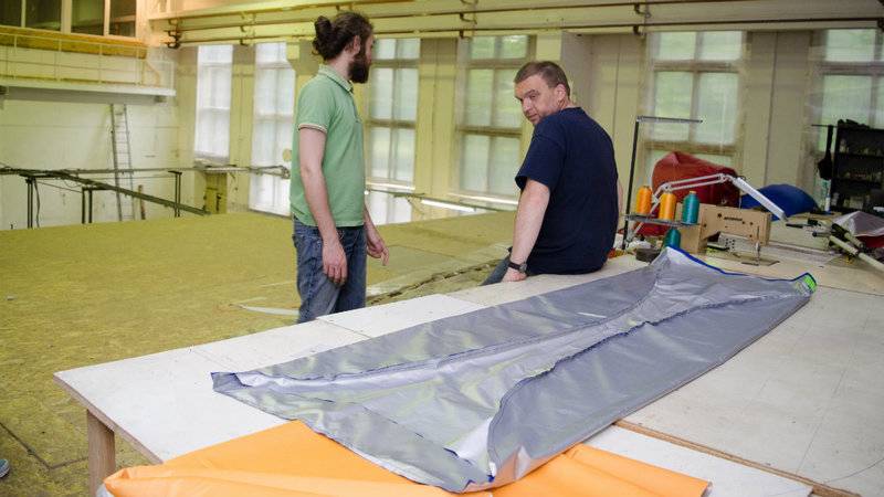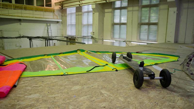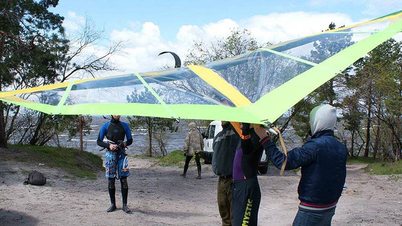 «Мы думали о максимально простой конструкции. Главное, чтобы можно было кататься. Сначала получился не очень надежный кайтвинг, он не выдерживал ветровых нагрузок и периодически ломался».