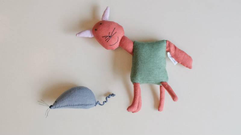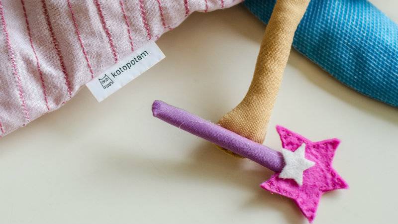 Kotopotam не сотрудничает с поставщиками материалов, ведь каждая игрушка индивидуальна и ткань для нее приходится покупать отдельно, в небольших количествах — даже метра бывает много. Только этикетки Ирина с Владимиром заказали оптом.