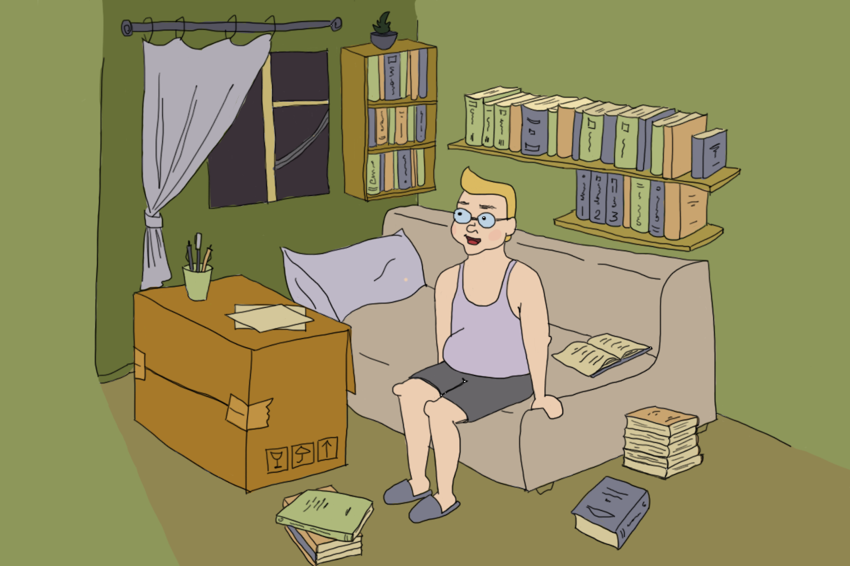 Нам он рассказал о преимуществах и недостатках такого соседства, постоянных тусовках, комнате на деcять квадратных метров, двух тысячах книг в ней и о том, как вообще живется в такой обстановке.