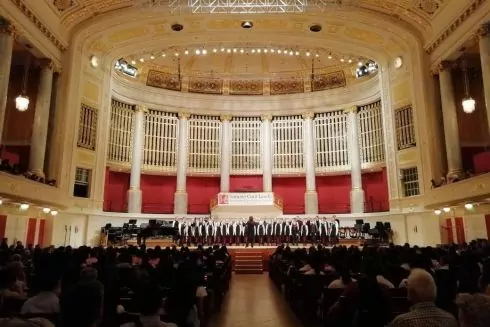 Украинцы выступили с программой, состоящей из произведений Арво Пярта, Виктории Полевой, Валентина Сильвестрова, Анны Гаврилец и Клемана Жанекена. Все 5 произведений исполнялись а капелла (то есть без музыкального сопровождения), что придало особую глубину звучанию в Золотом зале Венской филармонии.