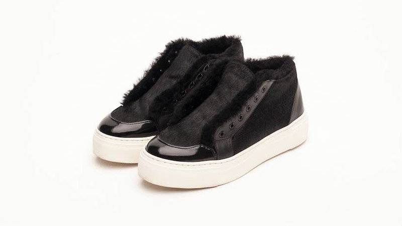 Ботинки из кожи с эффектом «пони» и подкладкой из натурального бараньего меха на толстой подошве. Цвета - чёрные, синие, бордо.