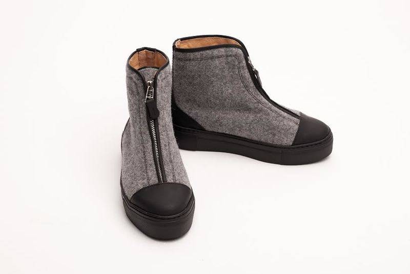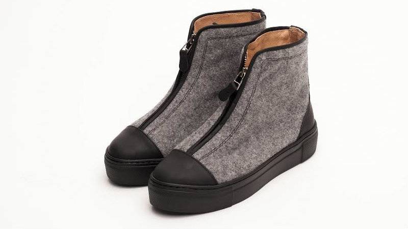 Серые высокие ботинки из войлока со змейкой - это fashion-интерпретация на тему V.A.L.E.N.K.I. Натуральный шерстяной войлок и прорезиненная кожа с эффектом soft touch. Цвета: чёрные + серый, жёлтый + красный, синий, зелёный.