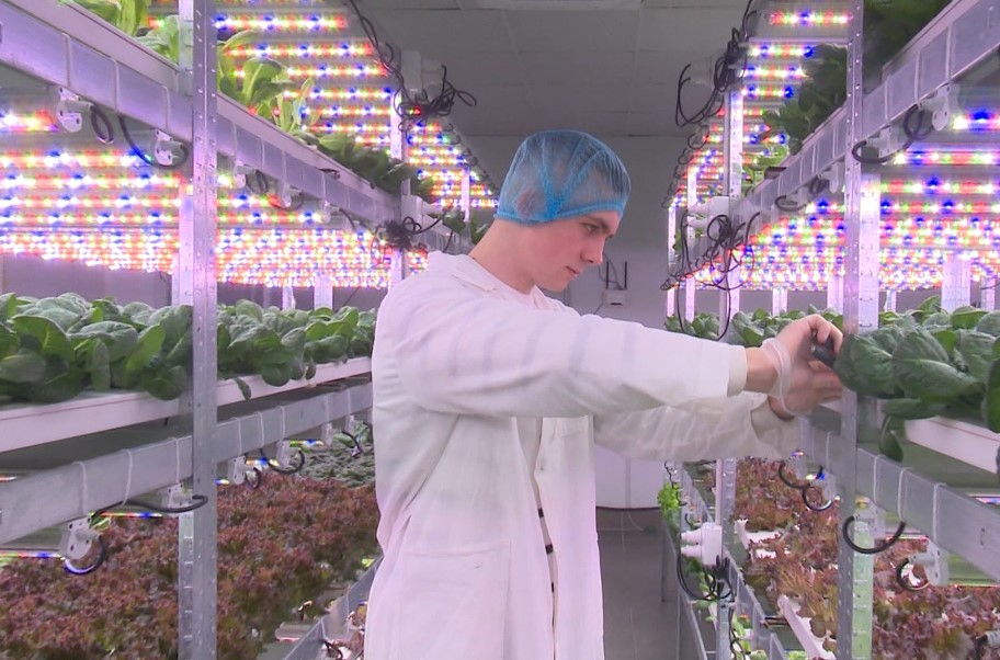«Все на гидропонике. Нужна только вода, свет, тепло и специальные удобрения. Вместо земли мы используем субстрат, в котором крепятся корни растения», — отмечает основатель фермы Николай Кислейко.