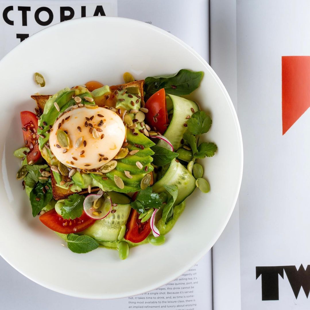 Цены: бублик с вегетарианским фаршем VIP Бубл EAT ME AT — 300 грн, банановые тофу-сырники в шпинатном бульоне с ягодами — 250 грн, почти не сладкая матча-овсянка — 220 грн, Биг Завтрак «№ 3» — 300 Типа Негрони» - 220 грн.