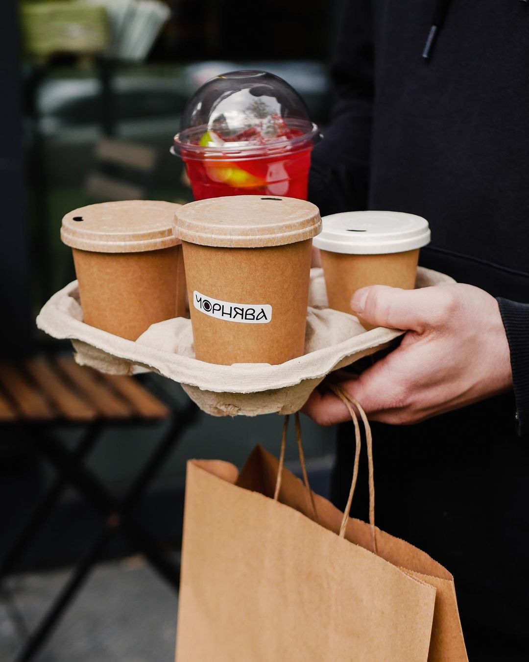 Кроме традиционных кофейных напитков есть фильтр и кофе на растительном молоке. Можно заказать украинские чаи из Индии и Японии. Завтраки готовят весь день, есть десерты.