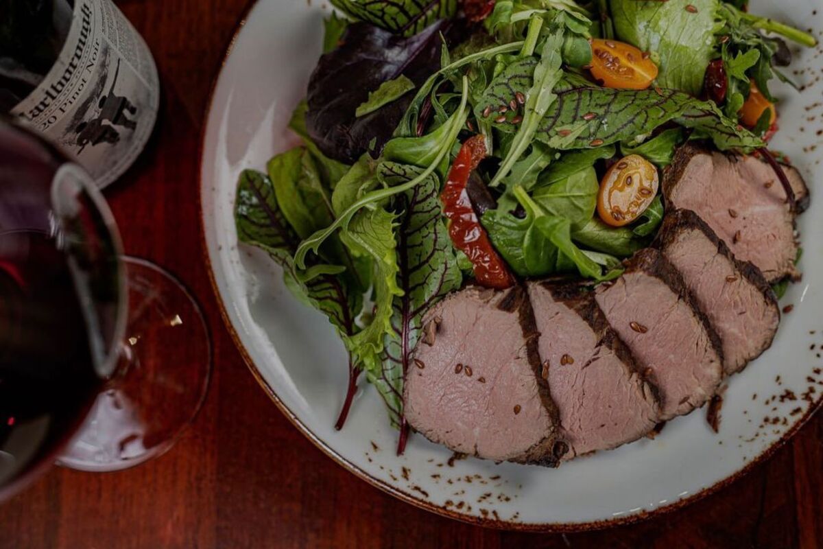 В меню: три вида бургеров, шаурма, салаты, стейки из лосося и телятины, паста и десерты.