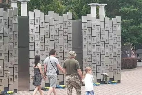 На входе в Бучанский городской парк установили инсталляцию с именами и фамилиями 501 погибшего бучанца во время российской оккупации города.