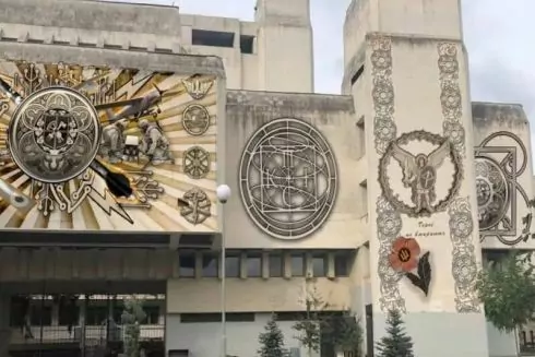 Корпус КПИ №9 — часть архитектурного ансамбля Киевского политехнического института, который спроектировал выдающийся украинский архитектор Владимир Лиховодов. Стены здания облицованы белым травертином, который является достаточно дорогим материалом, и покраска поверх него выглядит как минимум нецелесообразной и абсурдной. Здание не нуждается в каких-либо вмешательствах, кроме бережной очистки поверхности стен», - объясняет Инга Леви, художница и куратор реставрации мозаик.