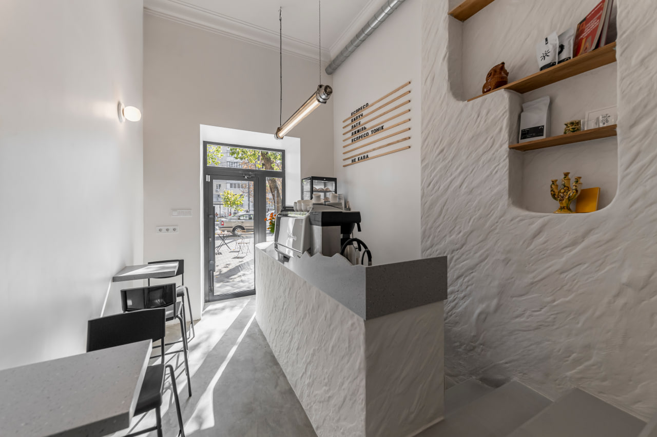 Цены: эспрессо — 35/45 грн, флет-вайт — 65 грн, фильтр-кофе — 50/60 грн, тыквенный латте — 75 грн, какао — 50/70 грн, имбирный чай — 65/120 грн, наполеон (кокосовый, фисташковый) — 85 грн, шу — 65 грн, канеле — 45 грн, паштейши — от 55 грн, киш — 135 грн, сэндвичи — от 125 грн
