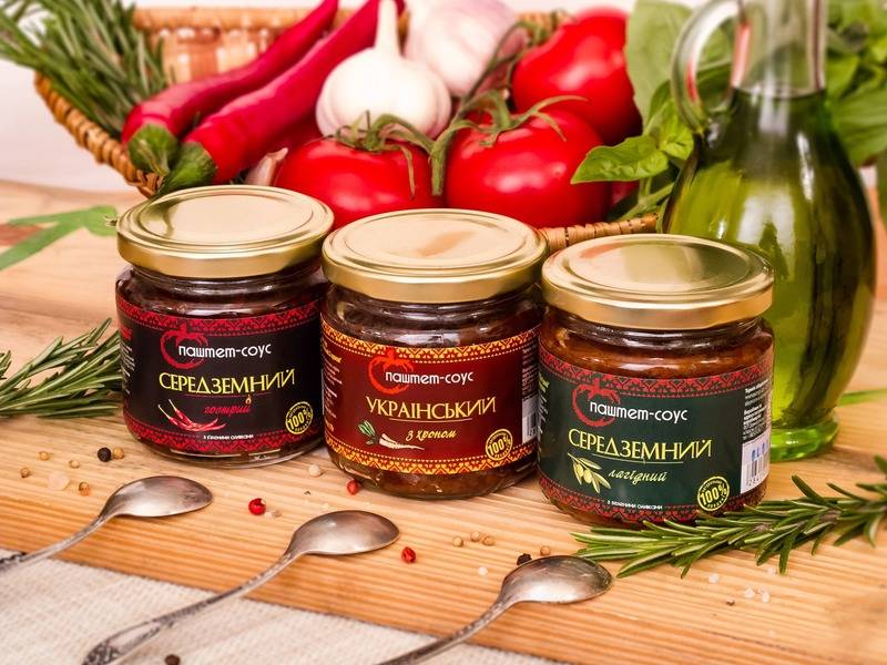 «Украинские вяленые помидоры» – это семейное дело по производству паштет-соусов. Есть паштет-соус с хреном, средиземноморский острый и средиземноморский мягкий. Компания сотрудничает с Salateira, Il Molino и OKKO.