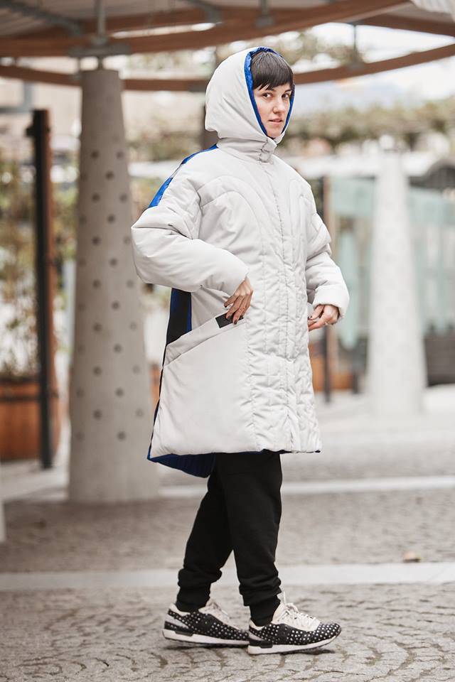 Бренд предлагает объемное пальто-одеяло, утепленное силиконизированным синтепоном. Такую модель можно носить до -20 градусов мороза. Есть также пальто-одеяло с дополнительным утеплителем slimtex, который приравнивается к пуху. Также есть пальто-куртки с капюшоном, высоким воротом и встроченным поясом. Они рассчитаны на температуру от 0 до -15 градусов.