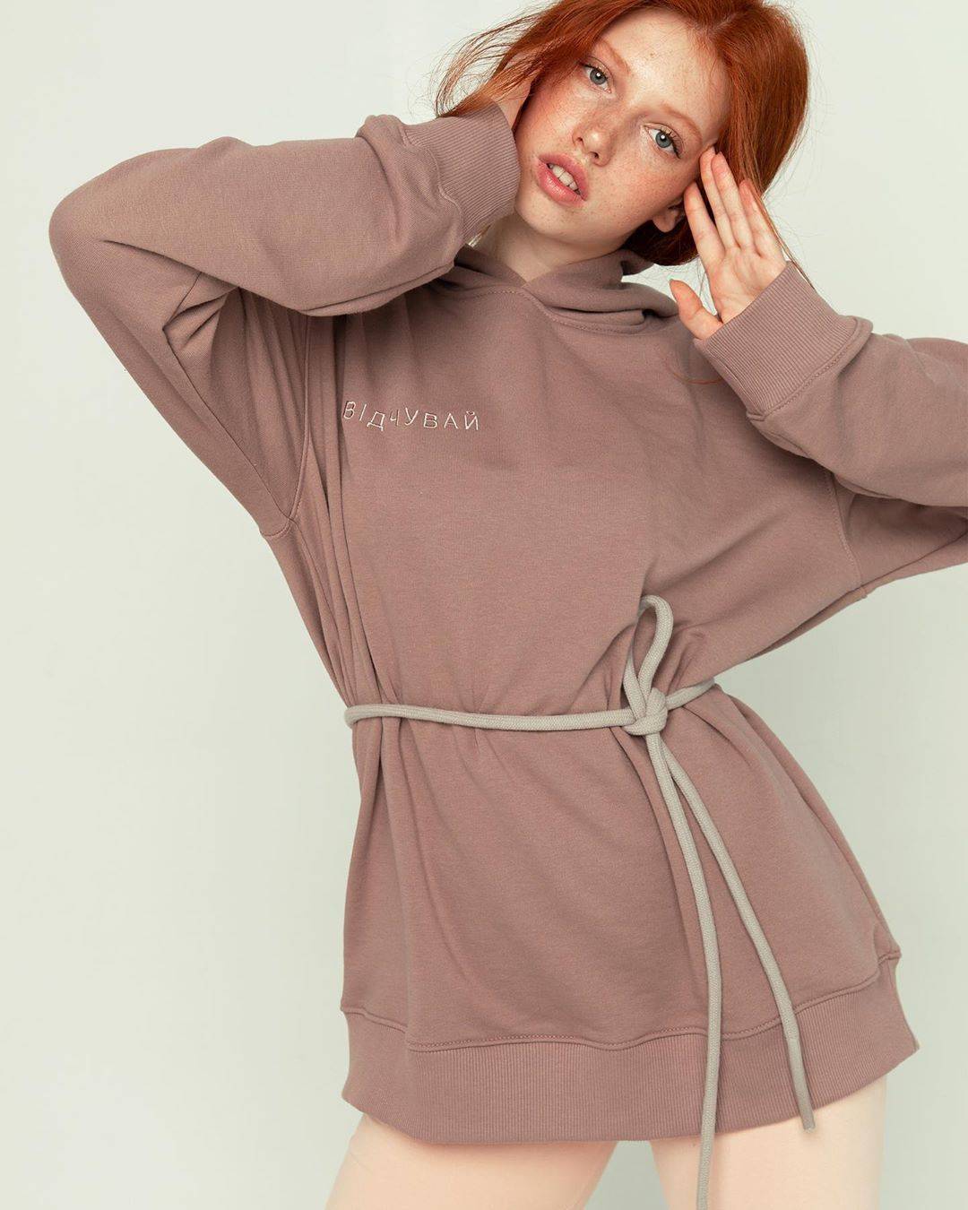 Бренд шьет унисекс худи с надписью «Відчувай» из хлопка и полиэстера. Есть как утепленные, так и неутепленные варианты. Из цветов — молочный, голубой, серый, серо-лавандовый, хаки, какао.