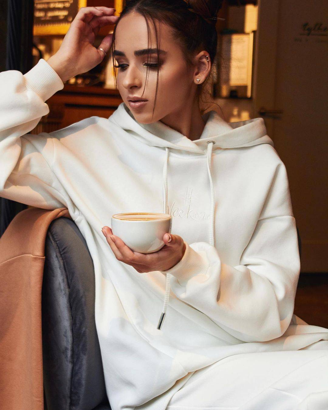 В новой коллекции бренда — теплые костюмы из штанов и худи с вышивкой «#Weekend» (розовый, лавандовый, молочный, бежевый). Костюмы изготовлены из американского хлопка. Также можно купить худи отдельно.