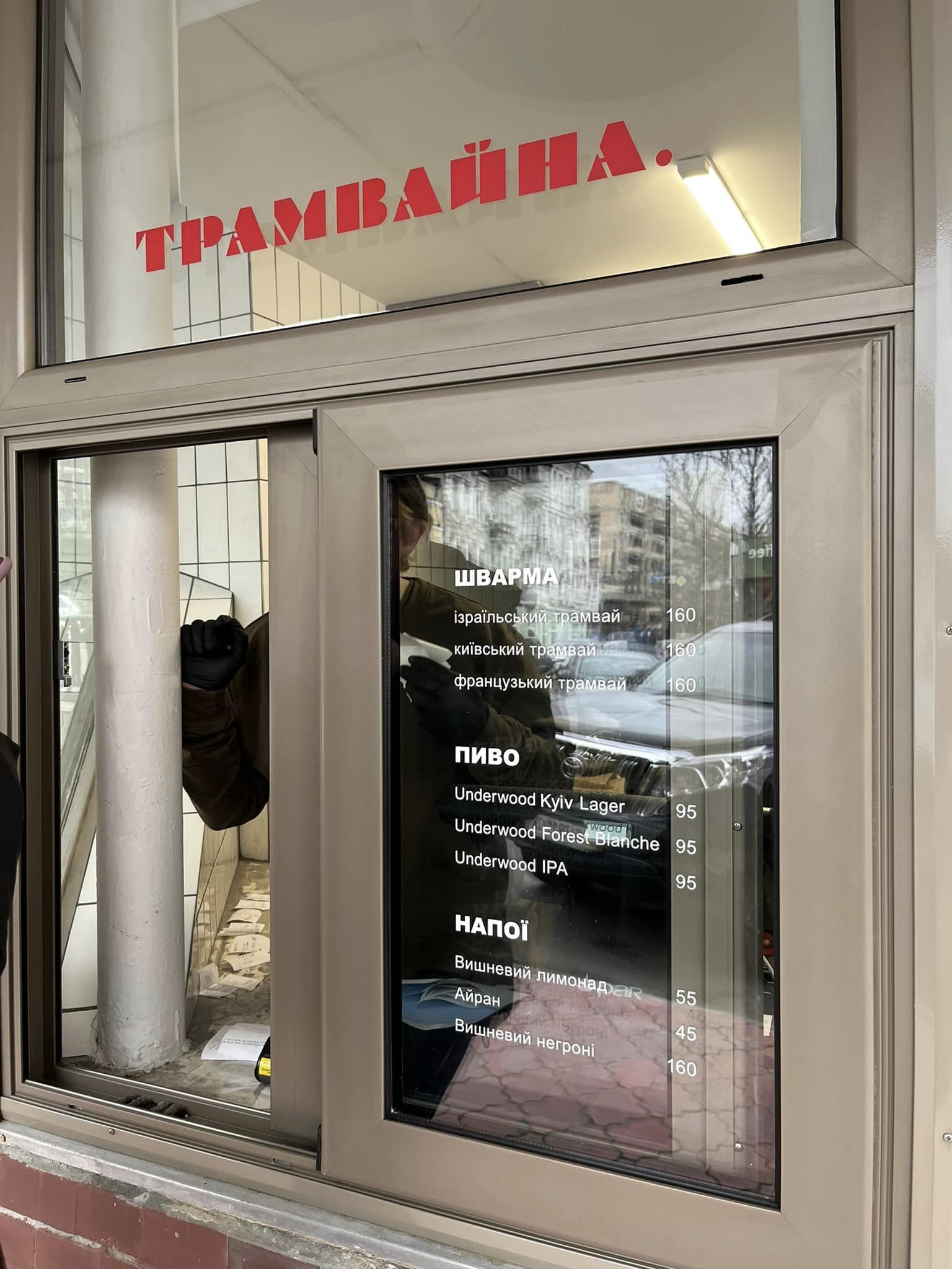В меню – три вида шаурмы: “Израильский трамвай”, “Киевский трамвай и “Французский трамвай”. Цена любой – 160 гривен.