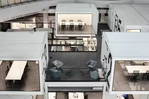 Пространство состоит из двух частей. Первая — это инновационная IT-школа. Вторая часть представляет собой современный коворкинг, расположенный на двух этажах. Над рабочими столами на открытых пространствах есть специальная металлическая конструкция для подвешивания осветительного оборудования и звукопоглощающих панелей.