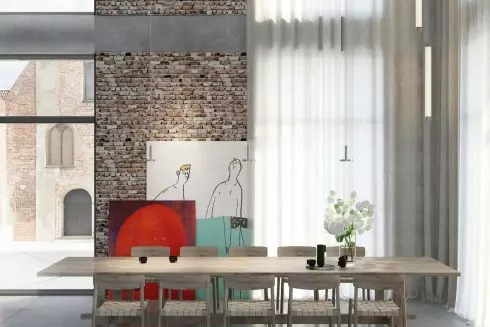 Команда стремится гармонично вписать интерьер кондитерской в архитектуру старого фабричного здания. Для этого архитекторы сохраняют промышленную отделку, в частности, кирпичную кладку на стенах, и добавляют новые дизайн-элементы только там, где считают это уместным.
