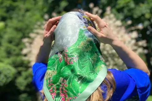 Рисунок для платка был создан вручную с помощью акварельных красок.