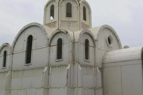 В Херсоне построили храм из пенополистирола. Строительство продолжалось в течение нескольких часов. В епархии объясняют, что это новая технология - после сбора самой пенопластовой конструкции ее укрепят и покроют твердой цементной оболочкой.