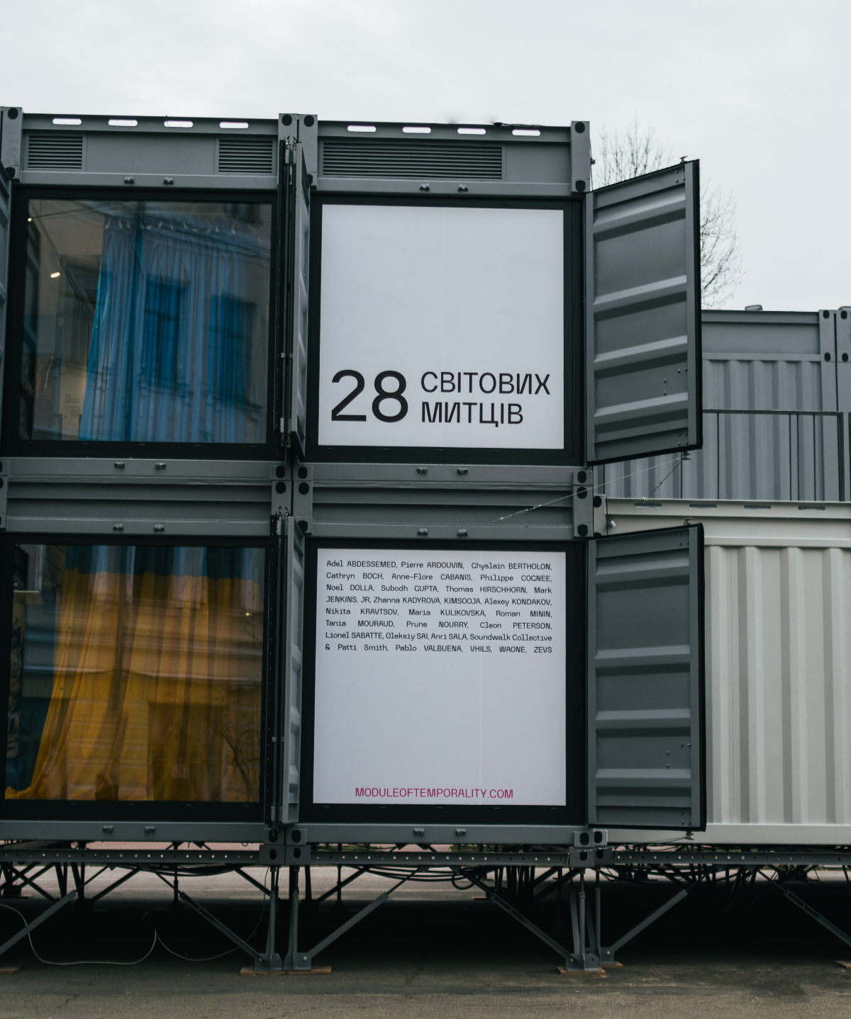 17 февраля в Киеве открыли временное художественное пространство Module of Temporality. Над сооружением выставочного павильона работала команда Balbek Bureau. МОТ состоит из контейнеров, для его изготовления также использовали металл из «Азовстали».