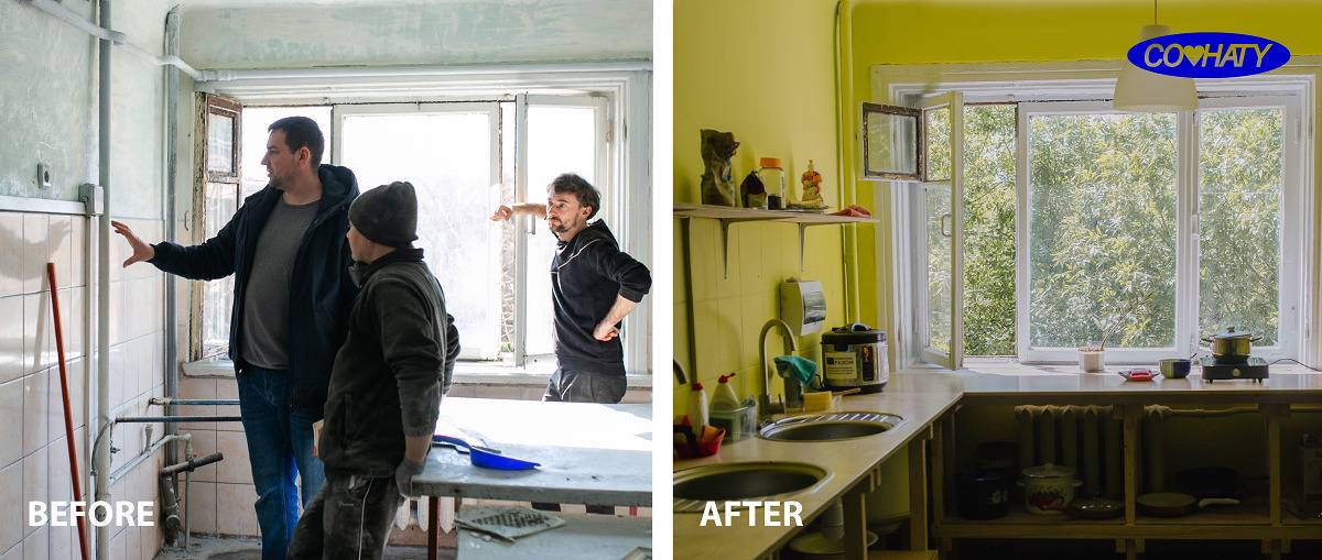 Там отремонтировали и обустроили 24 комнаты и общие пространства — четыре кухни, столовую, детскую, холл, санузлы и прачечную, коворкинг и входную зону. В общежитии уже проживают более 50 человек.К реализации проекта присоединились и другие общественные инициативы – киевская Urban Curators и «Критичне мислення» из Харькова. Также помогали жители Ивано-Франковска и других городов, а большинство мебели для общежития изготовили местные производители.
