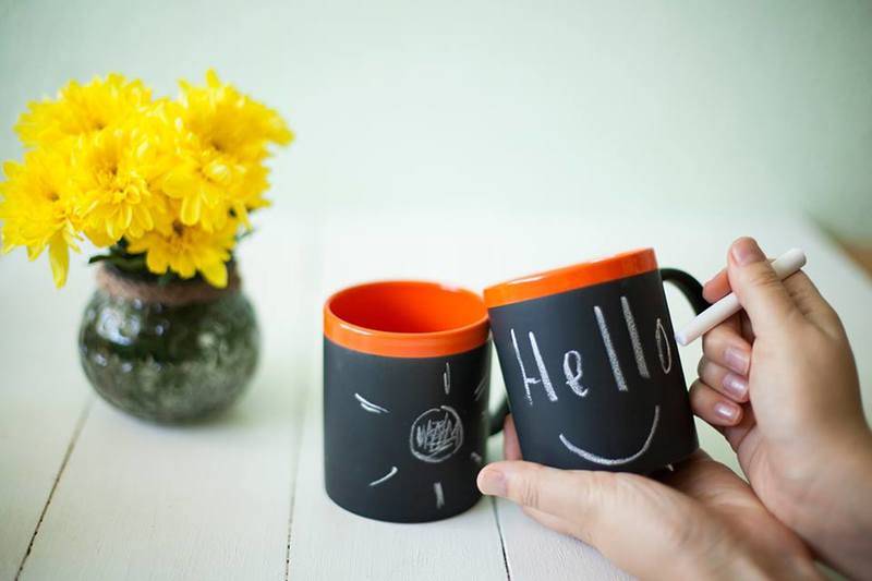 Чашка – это вообще-то довольно скучный и стандартный подарок, зато практичный. И уж если дарить чашку, то необычную – например, такую, на которой можно писать мелом. Удобно – вместо стикеров на холодильнике. По 160 гривен.