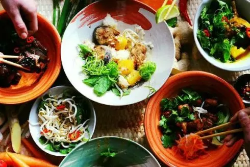 В меню три вида знаменитого фо — наваристого супа с рисовой лапшой. Здесь готовят как фо бо (с говядиной), так и фо га (с курицей) и веганский вариант — с сыром тофу и грибами шиитаке. Кроме того, подают немы (традиционные вьетнамские жареные роллы, по виду напоминающие жареные блинчики) и спринг-роллы (почти то же самое, что и немы, только завернутые в рисовую бумагу креветки со свининой не опускают в раскаленное масло).