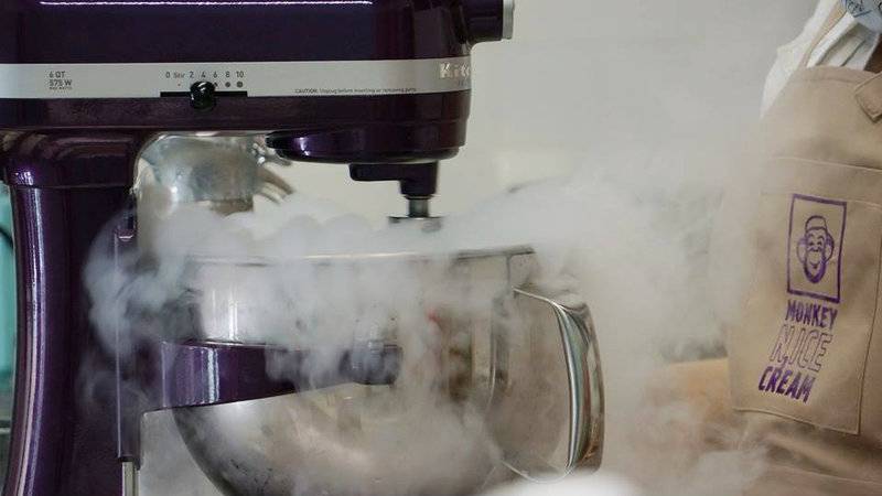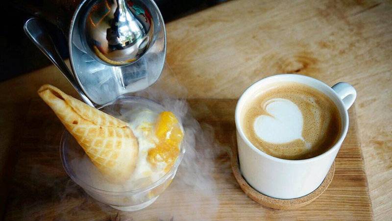 Криогенное мороженое стоит попробовать даже в такую погоду, по крайней мере, выглядит оно очень эффектно. Готовят его тут же: замораживают смесь из молока, сахара и сливок жидким азотом. Есть разнообразные вкусы. Помимо мороженого, предложат и другие десерты, в основном авторские - никаких эклеров и макаронс. Чай, кофе, тепло.