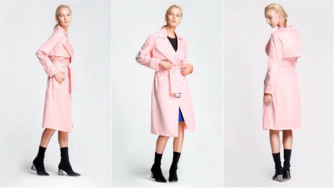 Еще один вариант легких осенних тренчей и пальто. В новой коллекции марки есть розовый тренч с асимметричными бортами из тонкой шерсти, серое или бордовое пальто с высоким воротом (состав: шерсть и вискоза), классическое пальто с запахом.