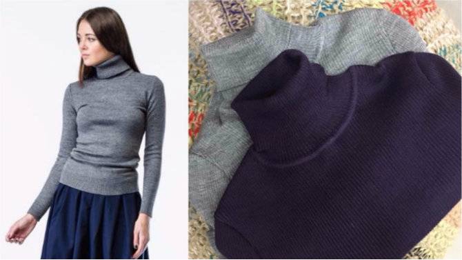К костюму или любимым джинсам хорошо подойдет вязаный теплый гольф из шерсти мериноса. Модель есть в двух цветах: темно-сером и синем.