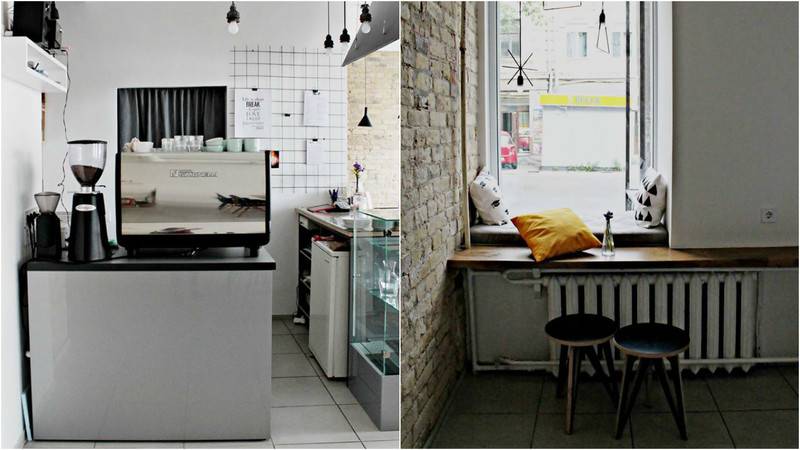 Желток - это кафе в американском стиле: безлимитный кофе, панкейки и кленовый сироп. Хоть дизайн и в черно-желтых тонах, можно представить что вы в городке вроде Твин Пикс пьете “чертовски хороший кофе” с агентом Купером и домашним любимцем. Блинчики, сырники и оладьи подают с арахисовым маслом, кленовым сиропом и джемом.