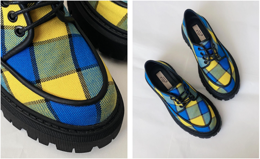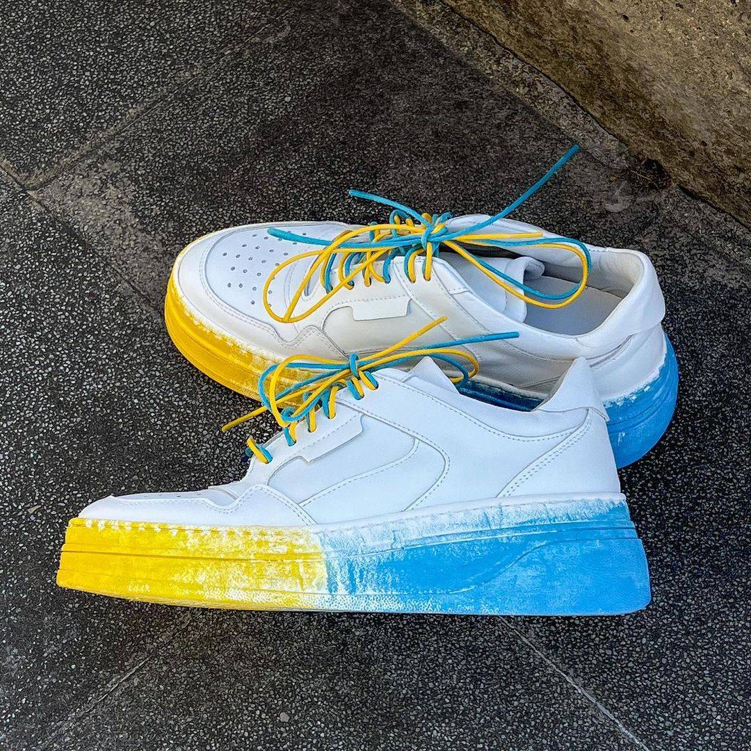 Киевский бренд обуви «Хамелеон» предлагает кроссовки с нашивкой «Україна» и желто-голубые яркие туфли.