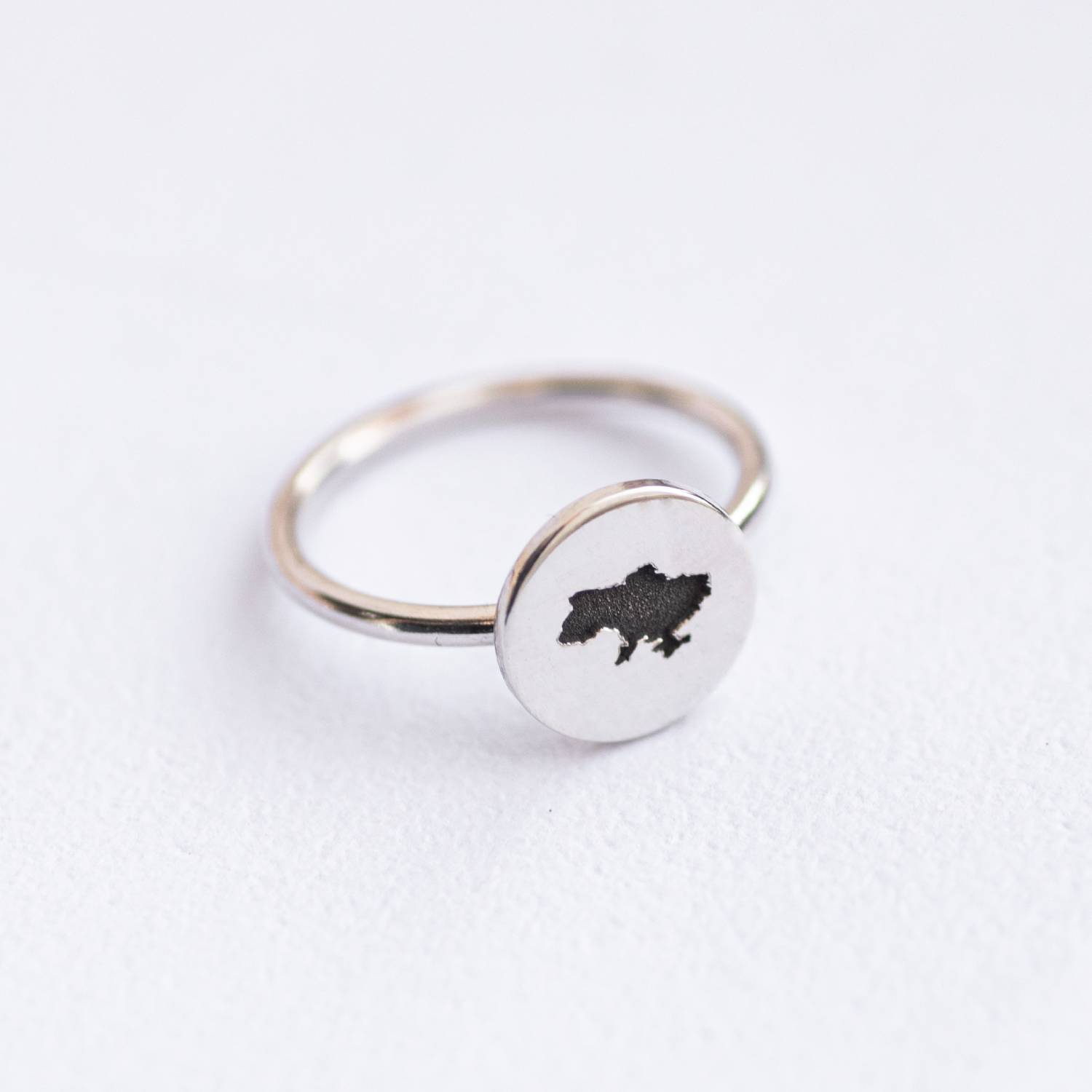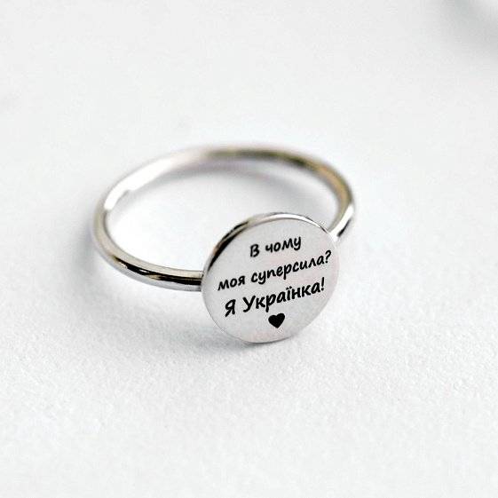 В ассортименте бренда – минималистические украшения с украинской символикой: кольцо «Моя Україна», жетоны «Бандера-смузі», «Квітуча Україна» и серьги с гравировками.