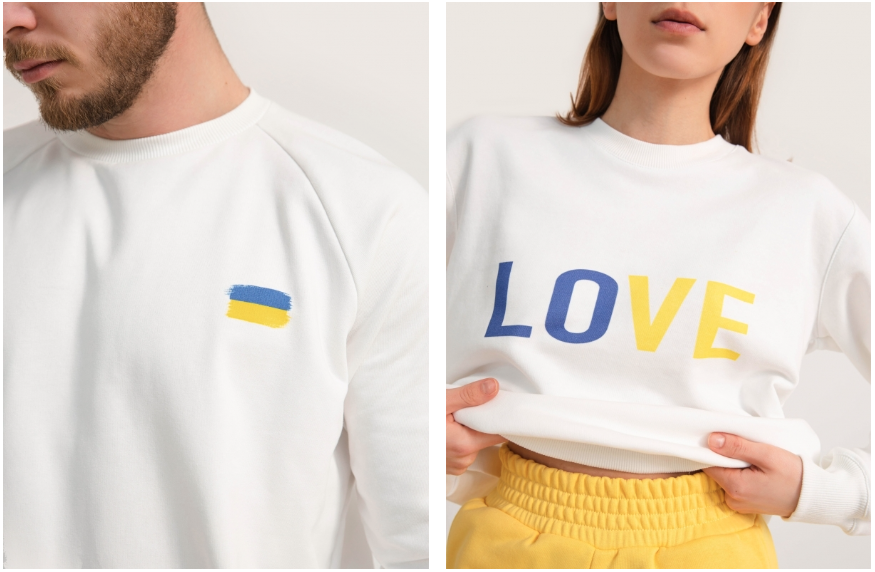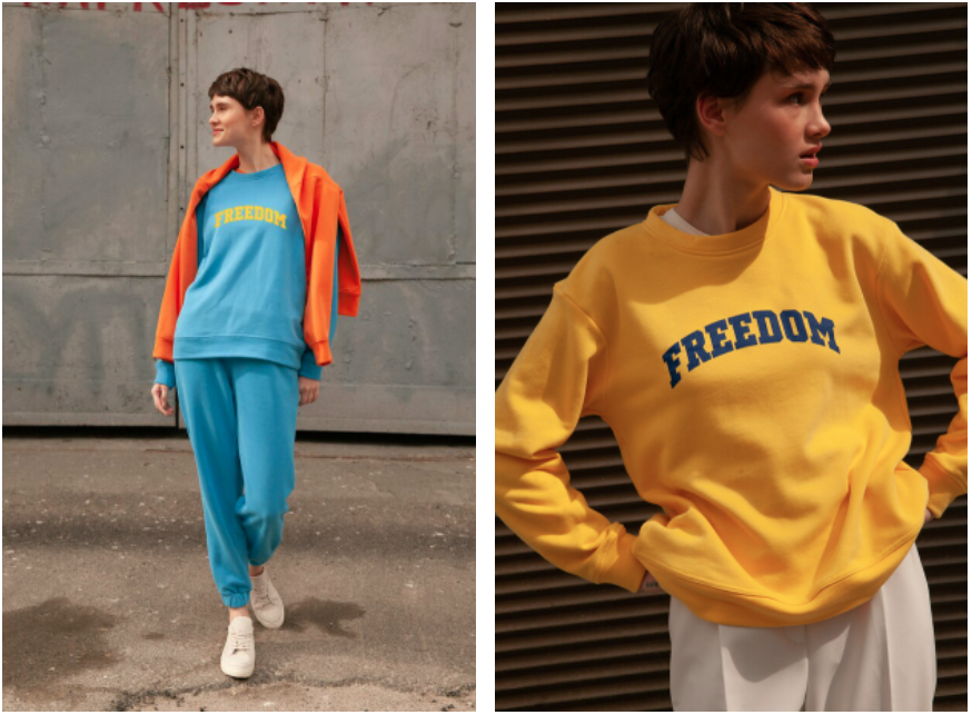 Бренд запустил серию женских и мужских рубашек в пастельных и нежных желто-голубых цветах с тематическими надписями «Made in Ukraine», «Вільна», «I'm Ukrainian».