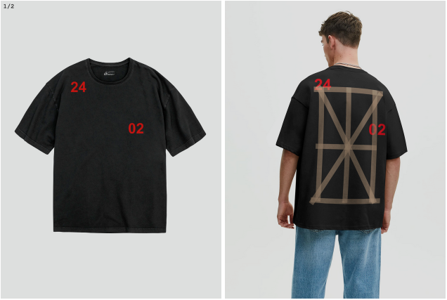 Бренд одежды выпустил футболку с дизайном заклеенных скотчем окон. 50% прибыли от продаж отправляют в поддержку проекта Re:Ukraine от balbek bureau, розработавшего концепт жилья для вынужденных переселенцев.