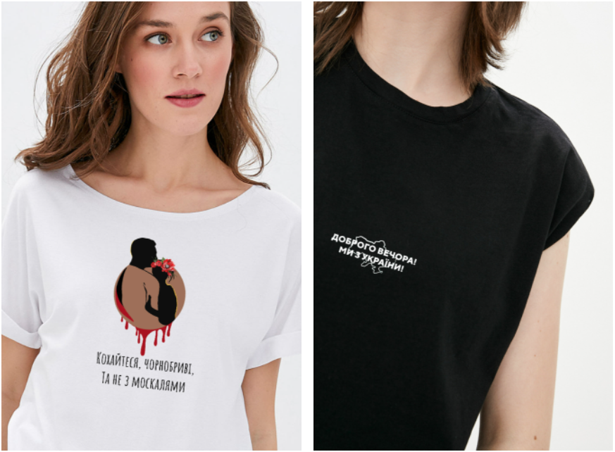 В частности футболки с авторскими принтами. К примеру, футболка Ukrained от Лизы Яблонской-Михайлусь, «Украинский иерофант» Михаила Скопа, Stop it от Ники Назаренко.
