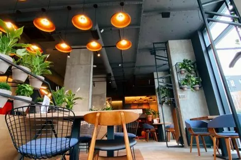 Интерьер заведения оформлен в стиле лофт. Также там обустроен уголок для детей.