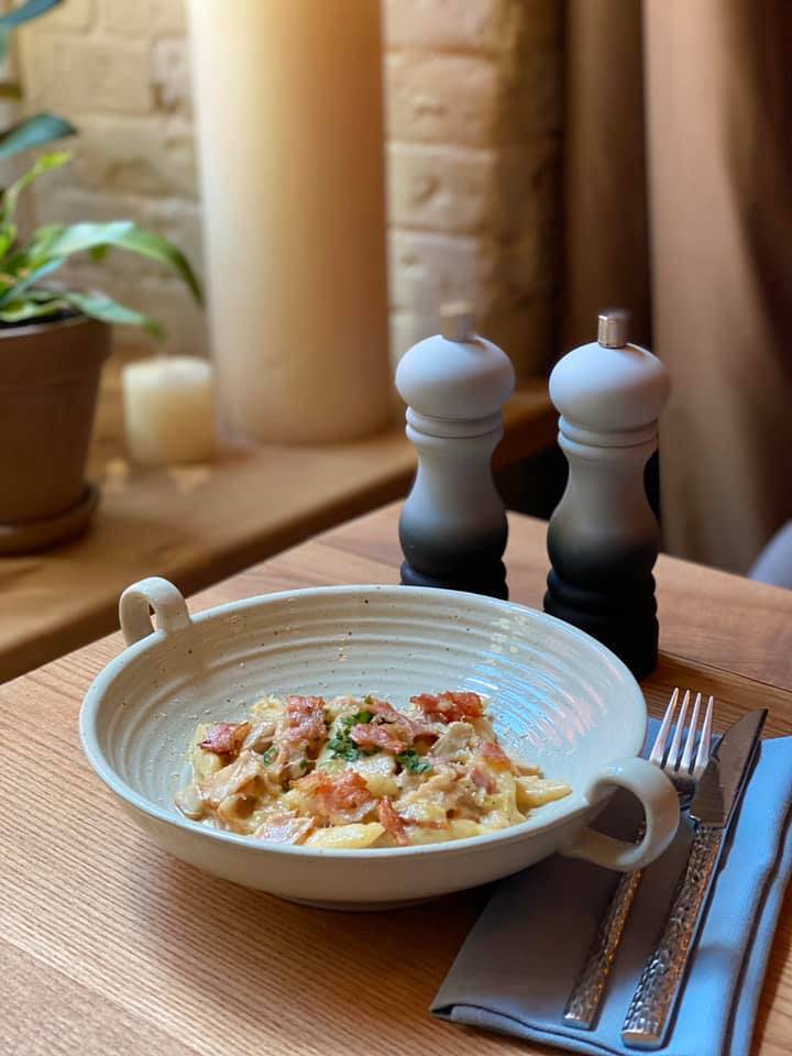 Цены: кролик с белыми грибами – 198 грн, пицца «Маргарита» - 135 грн, грибной суп – 112 грн, Фокачо с сыром моцарелла – 79 грн, домашнее мороженое – 54 грн