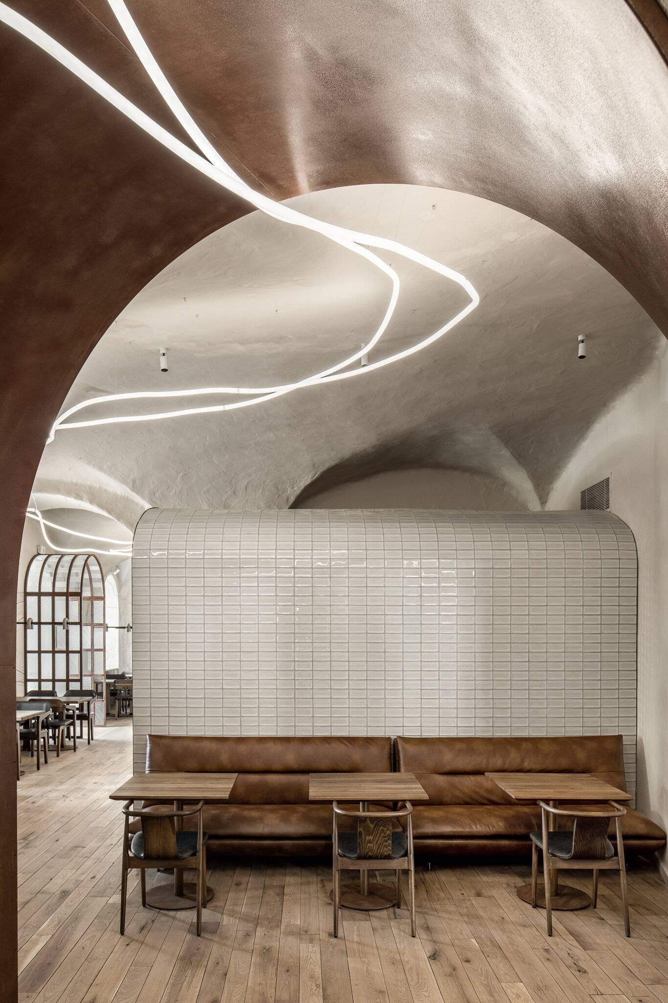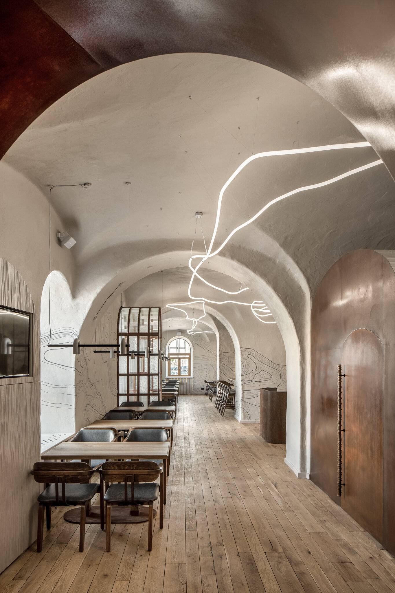 Общая площадь заведения составляет 1300 м². На первом и цокольном этаже насчитывается 274 посадочных места, и еще 115 – на летней террасе.