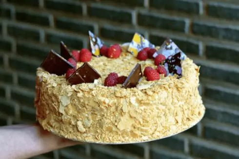 Цены: Прага – 75 грн (150 г), медовик – 130 грн (280 г), Наполеон – 160 грн (380 г), чизкейк – от 175 грн, яблочный штрудель – 95 грн, тирамису – 60 грн, макароны – 25 грн Адрес: ул. Эспланадная, 2