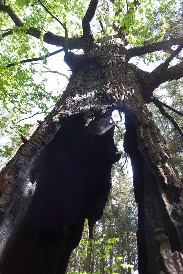 – По дороге в парк можно остановится в селе Гремьчее, где находится местный источник, а также в урочище «Богуславка». Когда-то здесь проходила лесовозная ветка железной дороги. Проходим недалеко от места, где была станция, и находим огромный дуб с выгоревшей сердцевиной. В сотне метров – скрытый колодец, который называют «повстанческим». В Первую мировую в 1915 году по этой местности проходила линия фронта, которая разделяла Цуманскую пущу пополам (по линии Черныж – Берестяны – Богуславка – Цумань). На следы событий столетней давности до сих пор можно наткнуться в лесу – это ямы от блиндажей, траншеи, тянущиеся на километры.