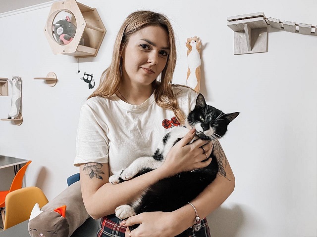 «Суть кафе не в том, чтобы я заработала средства. Моя основная работа – это разработка программного обеспечения, а здесь больше благотворительность: мы берем кошек из плохих условий, даем хорошие условия и ищем им семьи», – говорит девушка.