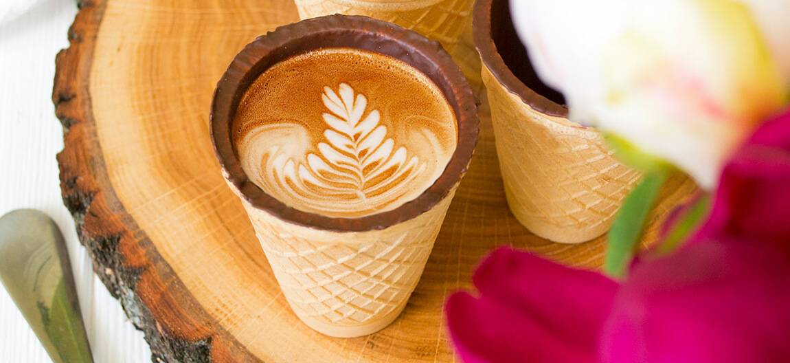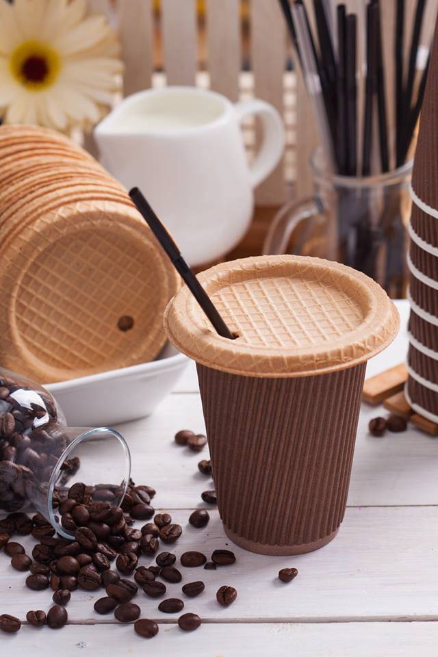 Украинская компания Lekorna производит съедобные стаканчики и крышечки для кофе “с собой”. Вафельные стаканы для кофе Yummy Сup покрыты внутри шоколадной термоглазурью. А вафельная крышка со специальным отверстием для трубочки подойдет для стандартных стаканчиков 240 и 340 мл.