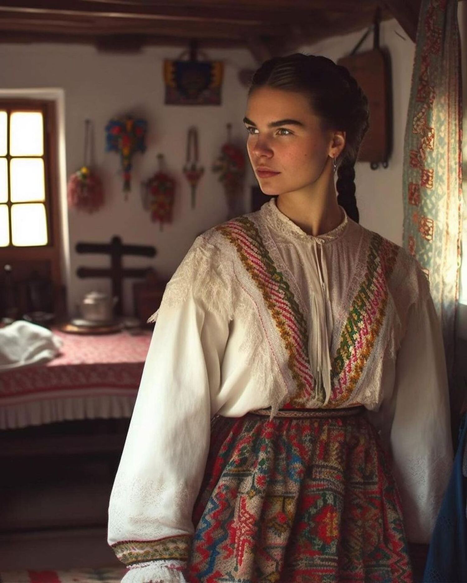 Фотографиня Елена Данилюк использовала возможности искусственного интеллекта, чтобы показать старинную украинскую одежду Карпат.